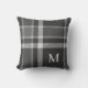 Dark Charcoal Gray Tartan Plaid with Monogram Throw Pillow