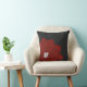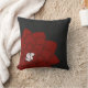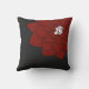 A big, bold, deep red flower with a pale pink center sits at the corner of a dark charcoal gray background on this chic accent pillow with dramatic flair. From my original digitally-created image.