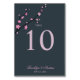 Dark cherry blossom wedding table numbers with customizable text printed on dark background