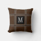 Dark Chocolate Brown Custom Single Initial Striped Throw Pillow