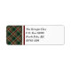 Personalized return address labels with a traditional Christmas plaid pattern in hunter green, maroon, and gold.
