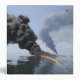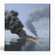 Dark clouds of smoke and fire emerge as oil burns during a controlled fire in the Gulf of Mexico featured with containment.