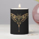 Create a warm, inviting atmosphere with this elegant noir and gold moth candle. Featuring a bold minimalist design on a deep black background, it adds a touch of dark sophistication to any space.