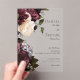Step into a realm of exquisite elegance with our floral dark and moody wedding invitation on acrylic. Designed to captivate the senses, this invitation boasts a striking burgundy background adorned with a breathtaking burst of rich burgundy and cream roses, pale lavender gray hydrangeas, and other mixed florals in soft white and palest pink, complemented by lush olive green foliage. The creamy text adds a touch of romance to the overall allure. Embrace the opulence of the season and set the tone for your special day with this stunning invitation, sure to leave a lasting impression on your guests. Created by Simply Farmhouse Press.