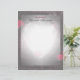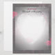 Beautiful writing paper has a heart design shimmering in the middle and elegant black borders with red roses adding splashes of color.