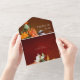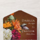 ALSO AVAILABLE WITH A QR CODE OR WITH OR WITHOUT DINNER CHOICE OPTIONS. Celebrate the beginning of your forever with invitations as breathtaking as the sunset itself! Introducing our stunning sunset inspired wedding invitations, adorned with a vibrant spray of realistic flowers in hues of orange, yellow, red, and pink, perfectly mirroring the colors of a picturesque sunset. Each petal and leaf is meticulously crafted to exude the beauty of nature, with dark sage green foliage providing the perfect backdrop to the fiery hues of the flowers. The soft white text delicately floats on a slightly distressed copper-colored background, adding a touch of rustic elegance to your invitations. Created by Simply Farmhouse Press.