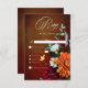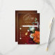 Celebrate the beginning of your forever with invitations as breathtaking as the sunset itself! Introducing our stunning sunset inspired wedding response card with dinner selections, adorned with a vibrant spray of realistic flowers in hues of orange, yellow, red, and pink, perfectly mirroring the colors of a picturesque sunset. Each petal and leaf is meticulously crafted to exude the beauty of nature, with dark sage green foliage providing the perfect backdrop to the fiery hues of the flowers. The soft white text delicately floats on a slightly distressed copper-colored background, adding a touch of rustic elegance to your invitations. Created by Simply Farmhouse Press.