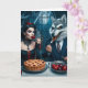 AI generated art of beautiful grown up Snow White eating cherry pie with the wolf in a fairytale collision where Little Red and Snow White Vintage fairytales collide