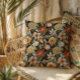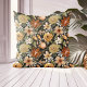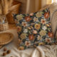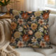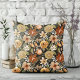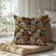 This modern watercolor floral print features lively flowers in muted fall shades of yellow and orange against a black background.