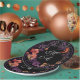 The exquisite beauty of deep purple autumn florals is enhanced by a black background and branches of burnt orange blossoms and leaves. The couples names or monogram stand out in beautiful white script. Perfect for an elegant black wedding theme, goth or halloween shower or reception. Adorn your bridal shower or wedding reception in darkness.