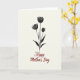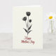 On the front of the card, three stylized flowers in deep charcoal tones stand close together, their pointed petals and slim, arching stems leaning in as if sharing a quiet moment of friendship ❤️. Tapered leaves sit like soft silhouettes around the stems, keeping the arrangement simple and calm. The blooms fill the upper two-thirds of the design, leaving open space below for the message to breathe. A warm cream background glows behind the dark florals, creating a gentle contrast that feels intimate rather than loud. Slight tonal variations in the petals add a brushed, painterly texture, like ink washed with water. Near the bottom, the words “Happy Mother’s Day” appear in flowing red lettering, centered and easy to spot. The red text adds a tender, affectionate touch, like a small bouquet offered with care 🌼. The stems curve upward from the lower area, guiding your eye back to the clustered flowers above the crimson message.
