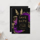 Dark Floral Purple Gold Wedding Save the Date Invitation