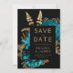 Dark Floral Turquoise Gold Wedding Save the Date Invitation