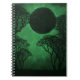 Grungy and cool Dark Forest Eclipse Notebook in green featuring a quiet forest scene with a lunar eclipse. This digital art notebook would be great for your poetry writing or other note keeping. Customize with your own text.