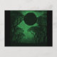 Grungy and cool Dark Forest Eclipse Postcard in green featuring a quiet forest scene with a lunar eclipse. This digital art postcard is perfect for sending a short note to a friend! Customize with your own text.