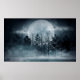 Dark forest. Gloomy dark scene with trees, big moo Poster