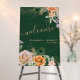 Dark forest green Peacock Feathers Welcome Wedding sign