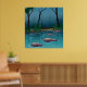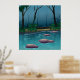 A dark looking forest with dark trees, stones and a pond. This design looks really effective on these Poster