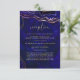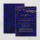 Modern trendy wedding design. Watercolor geode with elements of digital art, shades of deep blue, purple, rose gold and gold (gold is not real gold but color), black. Elegant calligraphy. Geometric elements. Bold, modern, contrast, saturated, remarkable, unique.