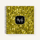 Dark gold yellow faux glitter sparkles Monogram Notebook