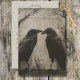 Step into the enigmatic embrace of your love story with our dark and moody gothic wedding invitation suite. Capturing the essence of mystery and romance, our wedding response card with dinner choice options features a captivating image in a charcoal style, showcasing two majestic black ravens locked in a tender beak-to-beak embrace amidst twisted bare trees. Behind them, a soft, misty backdrop adorned with a heart of branches sets the scene for your unique union. The back, adorned with a matching tan moire taffeta background and vintage font, adds a touch of timeless elegance. Invite your guests to share in the intrigue and allure of your special day with this unforgettable invitation suite. Created by Simply Farmhouse Press.