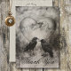 Step into the enigmatic embrace of your love story with our dark and moody gothic wedding invitation suite. Capturing the essence of mystery and romance, our wedding thank you card features a captivating image in a charcoal style, showcasing two majestic black ravens locked in a tender beak-to-beak embrace, encased in a heart shape. In front, two ravens stand together and set the scene for your unique union. The back, adorned with a matching tan moire taffeta background and vintage font, adds a touch of timeless elegance. Invite your guests to share in the intrigue and allure of your special day with this unforgettable invitation suite. Created by Simply Farmhouse Press.