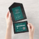 Dark Gothic Black & Teal Floral Satin QR Code All In One Invitation