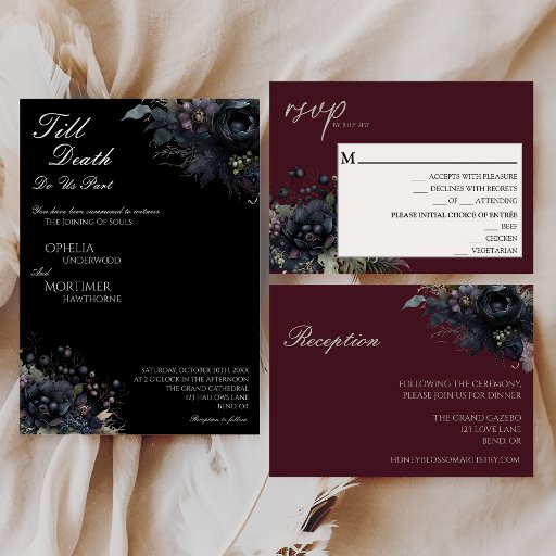 Dark Gothic Floral Till Death Do Us Part Wedding All In One Invitation