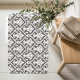 Dark Gray and White Baroque Damask Pattern Bath Mat