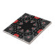 Vibrant decorative tile design featuring a seamless geometric pattern in dark gray, black, red and white.