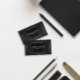 Monogrammed business card in a cool and modern typography design in black and dark gray.