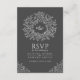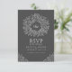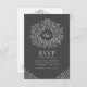 Dark gray drawn leaf monogram RSVP wedding QR Code Enclosure Card