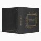 Elegant, wrinkled dark gray faux leather texture print. Elegant gold frame with swirly corners.