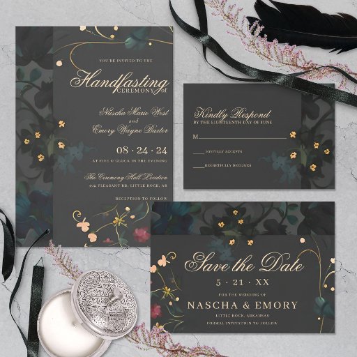 Dark Gray Moody Boho Abstract Floral Handfasting Invitation