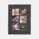 Dark gray monogrammed fleece blanket printed with a photo collage of five of your photos.