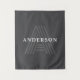Dark Gray Retro Modern Monogrammed Name Tapestry