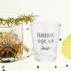 A great barware gift for the wedding bridesmaid squad attending a bachelorette party! Shot glass features modern style lettering with the words "Bride Squad" printed in a dark gray color along with bridesmaid's name printed in black, stylized script. Select from many, popular bridal party color schemes. Personalize your shot glass by editing and replacing bridesmaid's name.