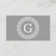 Dark Gray Wht Greek Key Rnd Frame Initial Monogram Business Card