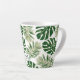 Modern dark green and gold monstera and palm leaves tropical latte mug. The elements of this gorgeous design are a pattern made of dark green monstera and palm leaves with gold outline and your monogram in a frame.