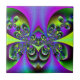 a colorful fractal art design tile of dark green butterflies with purple background