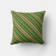 This throw pillow design features a dark green and dark salmon colored stripes pattern.