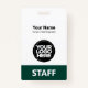 Easily personalize this Custom Administrative professional Name Badge without photo, with Scan Qr Code and large business logo. A simple business design in dark green and white colors fully customizable in front and back sizes, sans-serif basic and modern fonts and a professional and clear look, perfect for small business employee, boss, guests. These business id badges supplies are avaiable with lanyard, metal clip or with retractable. No minimum order, but save money and enjoy Zazzle discounts by multiple orders!