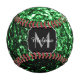 Personalize faux sparkly trendy girly sport equipment baseball ball with your initial and name. Beautiful girly glamorous dark green shiny glitters sparkles design. We use photo of green sparkles, not actual glitter! Faux sparkles!