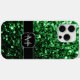 Green faux glitter sparkles Monogram iPhone 15 Case. Personalize Sparkly iPhone case with your initial and name. Beautiful girly glamorous shiny glitters sparkles. Photo of sparkles not actual glitter!