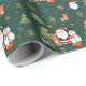 Wrap your gifts in classic holiday cheer with this charming patterned paper! The rich, dark green background provides a sophisticated base for a delightful, repeating cartoon motif. The pattern features the whole holiday crew: a smiling Santa, his cheerful Reindeer, a friendly Snowman, and festive Christmas trees, all sprinkled with golden stars and snowflakes.