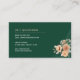 A trendy dark green background sits behind sleek lettering and elegant orange botanicals. Easy to customize with name and business information.