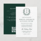 Dark Green Floral Crest Monogram Wedding QR Code Invitation