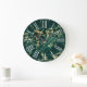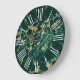 Dark Green Gold Marble White Roman Numerals Large Clock