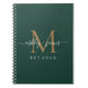Dark Green Gold Monogram Names Established Year notebook featuring a deep green cover with a bold gold initial monogram, flowing script names, and a personalized established year. This notebook is ideal for wedding gifts, anniversaries, newlyweds, or couples who appreciate refined, timeless stationery. The rich color palette and elegant typography make it suitable for journaling, planning, or keeping as a meaningful personal keepsake. Easily personalize with your details.