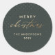 Spread holiday cheer with our Festive Sticker. A dark green background with faux gold foil polka dots sets the stage for "Merry" in classic sans-serif typeface and "Christmas" in elegant script. Personalize it further with your family name and year. Perfect for sealing envelopes or adding a touch of elegance to your holiday gifts.